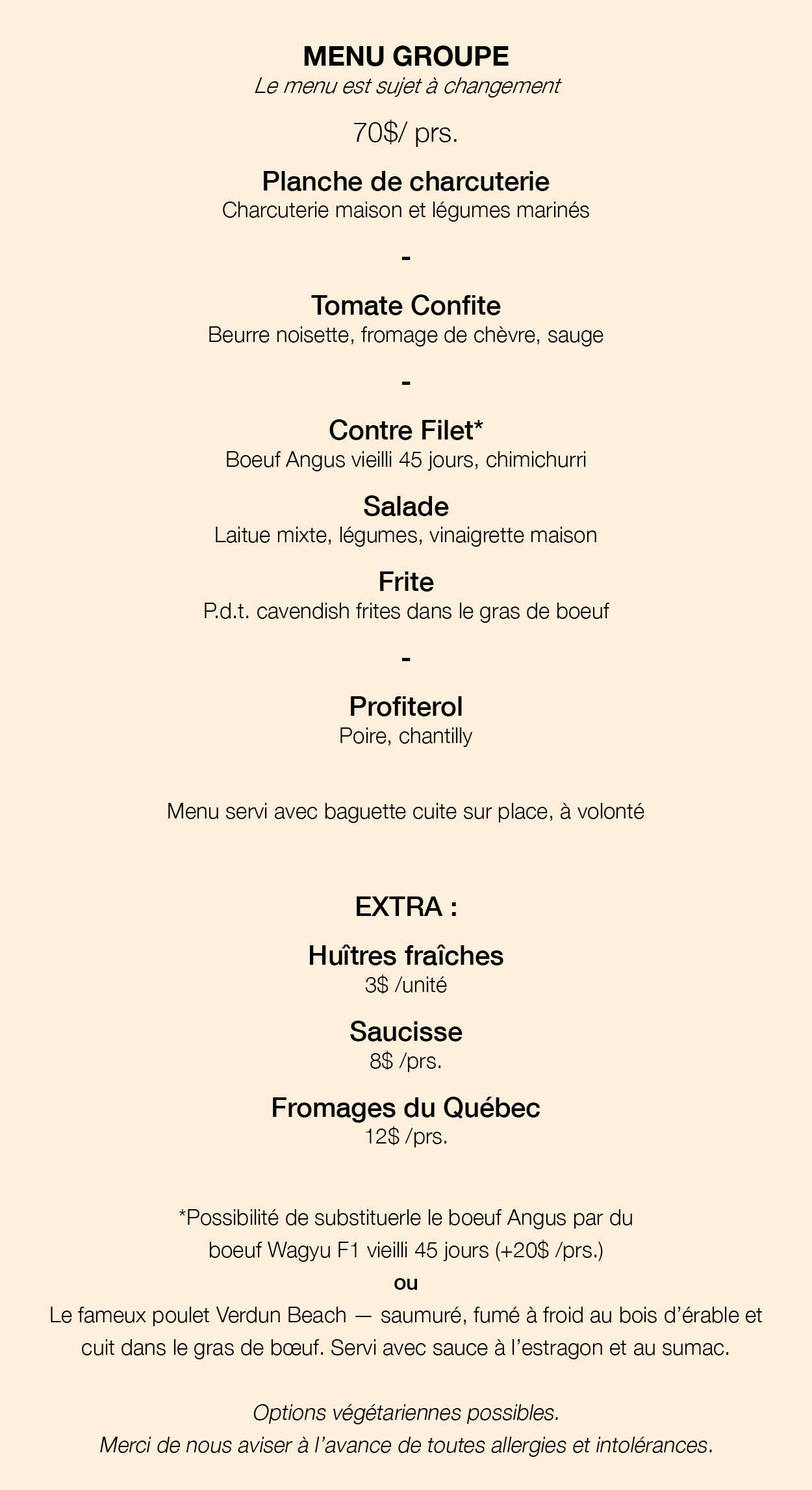 Il est possible de réserver la salle à manger de la boucherie Verdun Beef ou celle de notre restaurant, le Bar Verdun Beach, pour un événement privé.